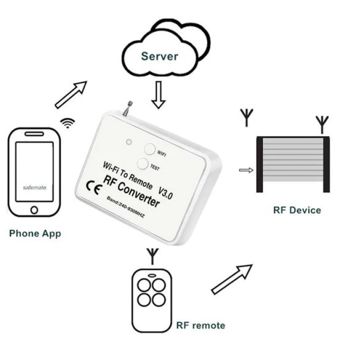 Універсальний пристрій здатний прочитати сигнал із пульта та ретранслювати його. Пристрій керується за допомогою смартфона