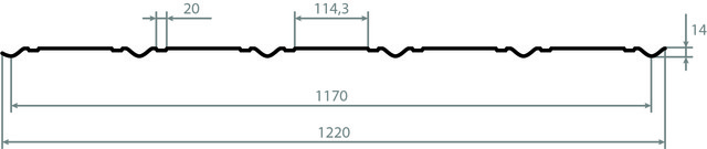 Профіль металочерепиці Рубін має наступні габаритні характеристики: